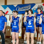 北河英典代表から「3年以内のリーグ優勝」を目標に掲げること。加えて、28年に三河安城駅前に新設され、Bリーグのシーホース三河と共用するホームアリーナ構想について発表され、新たなシーズンに臨むスタッフ、選手が新しいユニフォーム姿で並ぶ。今季就任した酒井新悟監督からも「チームの歴史的な瞬間に立ち会い、身が引き締まる思い。勝つこと、結果を残すことはもちろん、成長を楽しんでもらえるように。クインシーズ刈谷の未来を地域、ファンの皆さんと一緒に築き上げていきたい」と決意が述べられた。