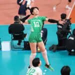 続く第2セット、西彼杵が落ち着きを取り戻してサイドからの攻撃で着実に得点、対する八王子実践はミドルブロッカーを軸に攻撃を展開する。拮抗した序盤から3点差をつけて抜け出したのは八王子実践。しかし西彼杵がブロックポイントから流れを掴みリードするも終盤に入って1点を奪い合い、一進一退の攻防となりデュースへともつれ込む。両チームの打ち合いの末に西彼杵が決め切りこのセットを奪った。