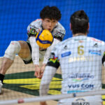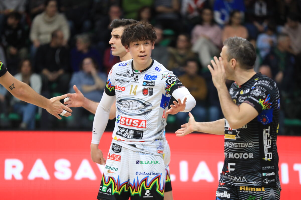 石川はスタートから起用される。第1セットの入りはペルージャが先行したが、中盤に差し掛かった場面でクーネオが逆転。ペルージャは食らいつくも、前に出ることができないまま終盤に入る。その後、クーネオに先にセットポイントを握られる中、デュースに持ち込んだペルージャ。最後はOHオレフ・プロトニツキーのブロックポイントが決まり、ペルージャが29-27で第1セットをもぎ取った。