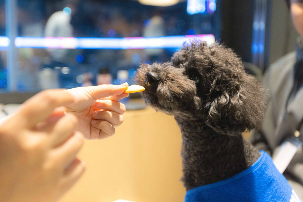 126年の歴史を持つ同社が初めて開発した、人と愛犬が一緒に食べられる新商品「ミニムーンライト with ドッグ」などが参加者に配布された。「同じものを一緒に食べる」という体験がもたらす幸福感は、最新の調査(東京農業大学・増田教授共同調査)でも注目されており、アリーナの興奮を共有しながらおやつを楽しむ飼い主と愛犬たちの笑顔が溢れた。