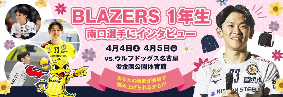 4月4日(土)、5日(日)に行われる大同生命SV.LEAGUE MEN(SVリーグ男子)第20節の日本製鉄堺ブレイザーズ vs ウルフドッグス名古屋の試合は、日鉄堺BZのホームである「堺市金岡公園体育館」で開催される。
