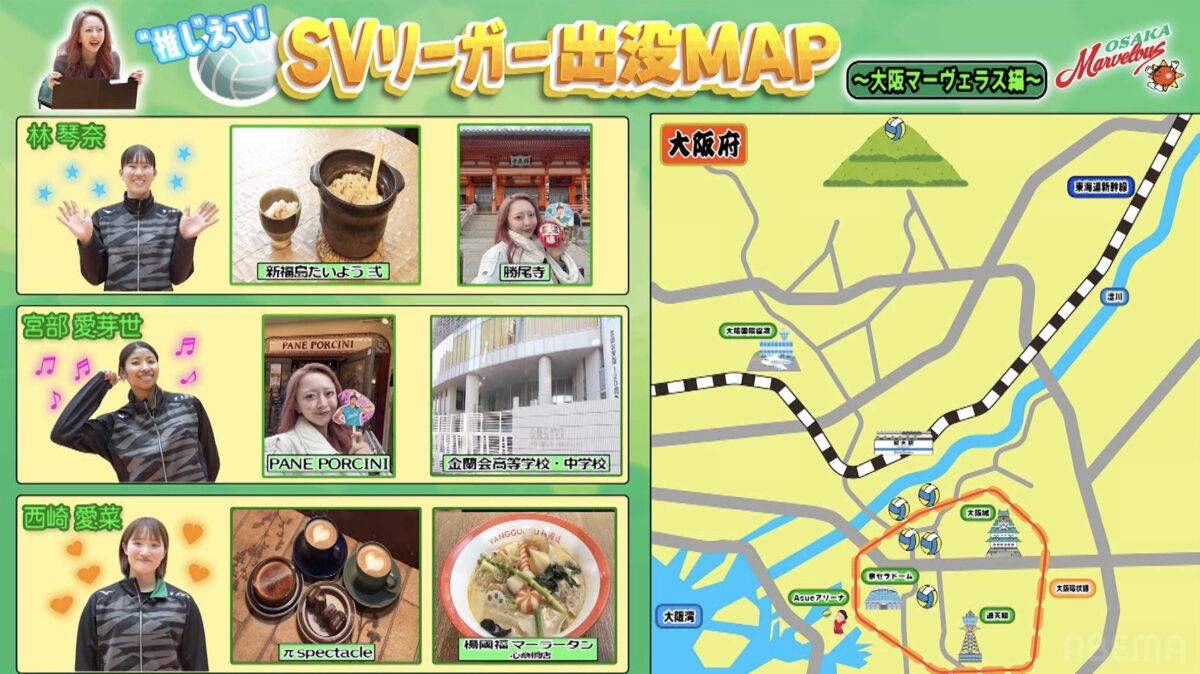 21日(土)、新しい未来のテレビ「ABEMA(アベマ)」にて、『“推し”えて!SVリーガー出没MAP 大阪マーヴェラス編 vol.3』が放送された。