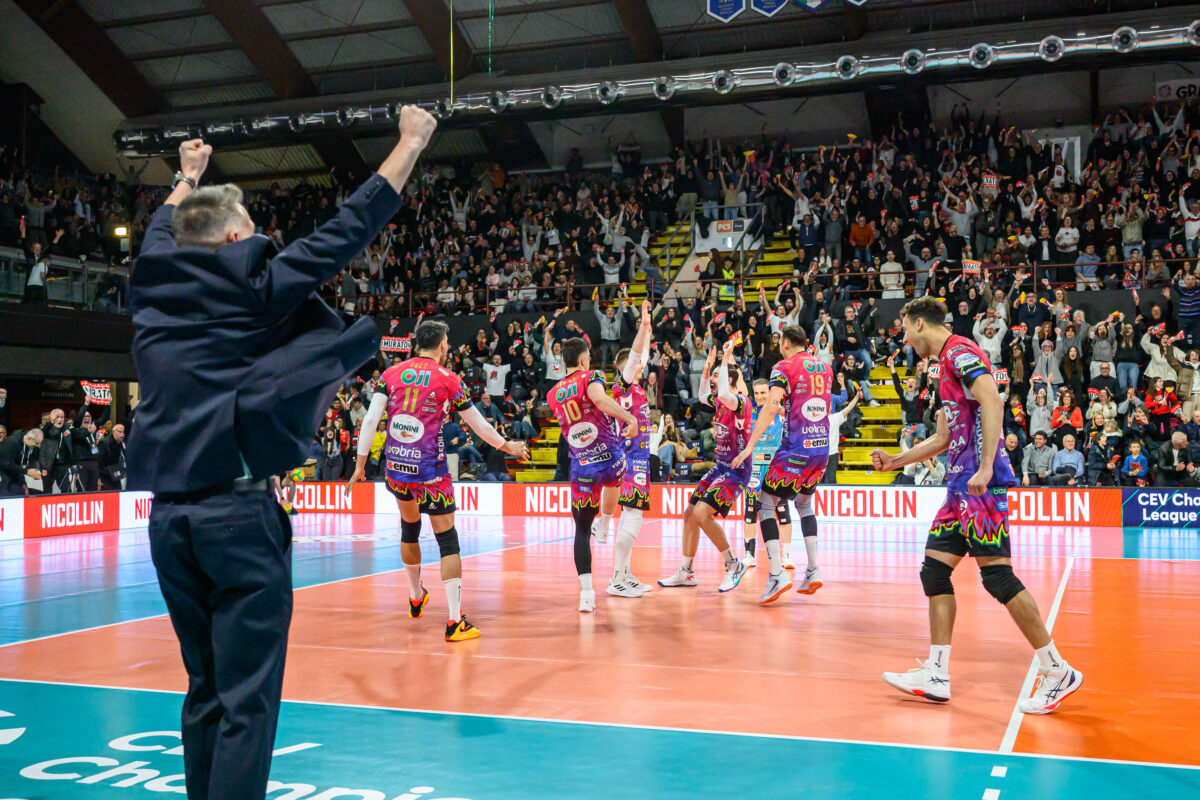リーグラウンドで6連勝を収め首位で予選通過をしたペルージャは、そのラウンドで同じグループだったラス・パルマスと再戦。リーグラウンドでは2試合ともペルージャが勝利し、準々決勝1stレグでもペルージャがフルセットの激戦を勝ち切り、2ndレグではファイナル4進出が懸かる一戦となった。