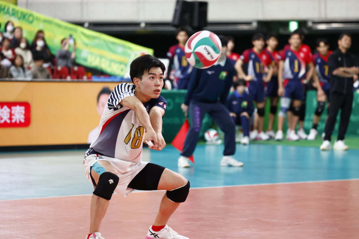 東山高校のディフェンスリーダーとして、相手のスパイクを拾い、コートにボールを落とさない辻本選手のレシーブに注目だ。