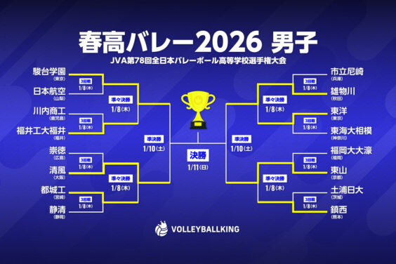 バレーボールキング ニュース一覧 VOLLEYBALL KING 編集部 VOLLEYBALL KING 編集部 国内外の最新ニュースや注目選手の特集、バレーボールをより楽しめるバレーボール情報・ニュースサイト『VOLLEYBALLKING(バレーボールキング)』編集部です! VOLLEYBALL KING 編集部の最新記事 海外 7時間前 マサジェディ翔蓮が途中出場で2得点! ミラノは本戦準々決勝に進出【男子CEVカップ】 女子チャンピオンズリーグ 9時間前 先発起用の石川真佑が攻守で活躍! チームはストレート勝利【女子欧州CL】 男子チャンピオンズリーグ 9時間前 石川祐希が先発起用で16得点の活躍! チームはフルセット勝利【男子欧州CL】 セリエA女子 10時間前 石川真佑と関菜々巳が先発起用されるもチームはどちらも敗戦…【セリエA女子日本人】 SVリーグ男子 13時間前 世界2位と天皇杯準優勝チームの戦い「BS12 SVリーグ中継2025-26」1月11日(日)「大阪ブルテオン vs. ヴォレアス北海道」 SVリーグ男子 2026.01.08 1/24に開催される東京GBのHGに声優ユニット「2HEARTS」がゲスト出演! セリエA男子 2026.01.08 ペルージャがミラノに勝利! 日本人選手の直接対決は叶わず【セリエA男子】 春高バレー 2026.01.08 夢のセンターコートへ! 就実やインターハイ女王の金蘭会が準決勝進出【春高バレー女子4日目】 春高バレー 2026.01.08 駿台学園が4年連続のセンターコートへ! 鎮西は高校3冠の夢断たれる…【春高バレー男子4日目】 1 2 3 … 495